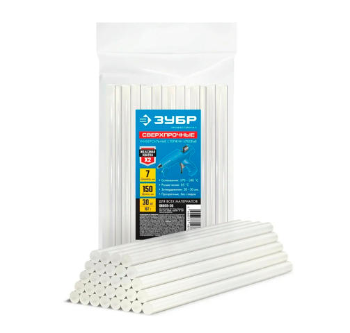 ЗУБР 7 х 150 мм, 30 шт, сверхпрочные прозрачные клеевые стержни, Профессионал (06855-30)