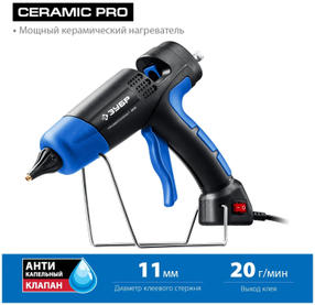 ЗУБР 200, d 11 мм, 20 г/мин, электрический термоклеевой пистолет, Профессионал (06852-11)