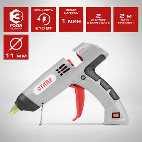 Ставр ПК-11/210 Пистолет клеевой 210Вт, стержни 11мм, выключатель, индикатор работы, медное с