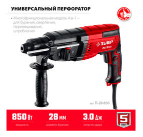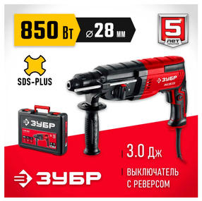 ЗУБР Перфоратор 28 мм, 850 Вт перфоратор SDS Plus (П-28-850)