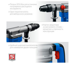 Настоящий инструмент для профессионалов Надежный перфоратор с большой мощностью двигателя Большая сила удара позволяет быстро выполнять отверстия необходимого диаметра даже в самых твердых материалах без перегрузки изделия и утомления Патрон SDS Max для установки широкого спектра профессионального расходного инструмента и быстрой замены в процессе работы Антивибрационная система значительно снижает вредное воздействие вибрации на оператора при длительной работе Предохранительная муфта эффективно защищает изделие и оператора от перегрузок при заклинивании инструмента Противоскользящее покрытие рукояток для надежного удержания Сетевой кабель рекордной длиной 5 метров в резиновой изоляции Удобный вместительный кейс в комплекте для хранения и транспортирования изделия и сменного инструмента 25 779,60 ₽ / шт