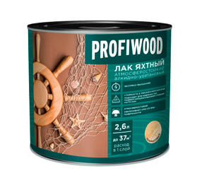 Лак яхтный PROFIWOOD атмосферостойкий алкидно-уретановый полуматовый 0,8л/0,7кг