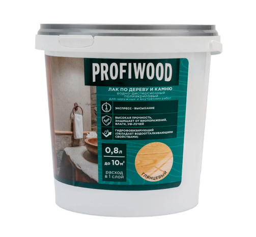 Лак акриловый по дереву и камню PROFIWOOD ВД глянцевый 0,9кг