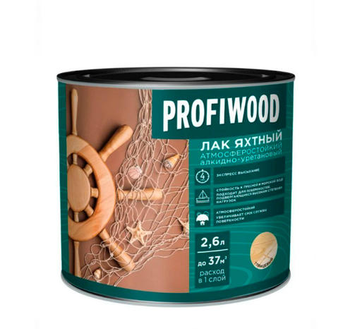 Лак яхтный PROFIWOOD атмосферостойкий алкидно-уретан. глянец. 2.6л/2.4кг