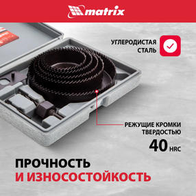 Набор кольцевых пил по дереву Matrix 704715 состоит из 8 предметов и включает 5 коронок диаметром 64-127 мм. Они предназначены для вырезания круглых отверстий глубиной до 27 мм в дереве, фанере, ДСП, ДВП, а также гипсокартоне и пластике. Пилы устанавливаются на электродрели. В комплект входит проставка для защиты коронки от проворота, что повышает скорость и качество сверления. Набор будет полезен при установке выключателей, электророзеток и элементов освещения, а также при прокладке трубопроводов. Преимущества Кольцевые пилы изготовлены из углеродистой стали, устойчивой к повреждениям, поэтому подходят для длительного использования. Зубья коронок разведены, что облегчает удаление стружки и увеличивает скорость сверления. Направляющее сверло упрощает центровку пилы, что позволяет получать отверстия правильной формы. В комплект входит шестигранный ключ 2,5 мм, позволяющий надежно зафиксировать сверло в державке. Набор поставляется в удобном пластиковом кейсе с ложементами, что облегчает его хранение и транспортировку. 1 121,00 ₽ / шт
