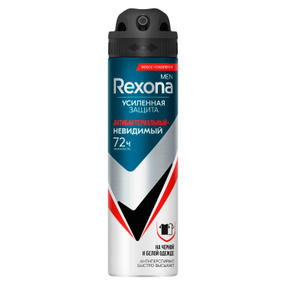 Будьте во всеоружии с антиперспирантом-аэрозолем Rexona Men Антибактериальный Невидимый на черной и белой одежде. Он гарантирует длительную защиту благодаря усиленной формуле для непревзойденной** защиты от пота и запаха на 72 часа*! Новая** революционная технология Motionsense активируется при движении, сохраняя свежесть и абсолютный** комфорт на весь день. Микрочастицы создают дышащую микропленку для надежной защиты от пота и запаха. Потовые железы блокируются частично, кожа при этом дышит. Больше движений – больше уверенности! В 10 раз лучше защита от бактерий – настоящей причины неприятного запаха´. Не требует повторного нанесения в течение дня. Усиленная формула с микрочастицами бережно сохраняет ткань от белых следов и желтых пятен. Подбирайте актуальные образы и будьте уверены, что антиперспирант не испортит ваши вещи. Эксперты бренда Rexona разработали элегантный аромат с древесной базой, который сидит близко к телу, приятен при нанесении и не перебивает аромат вашего парфюма. В линейке серии также представлены шариковый антиперспирант и антиперспирант-карандаш, чтобы вы могли выбрать идеальный для себя формат. Добавьте Rexona в свой ежедневный ритуал свежести. Используйте антиперспирант сразу после приема душа, наслаждайтесь свежестью весь день и будьте уверены. Дерматологически протестировано. 308,72 ₽ / шт