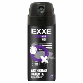 EXXE Men Дезодорант спрей Vibe мужской 150мл. Мужской дезодорант аэрозоль EXXE VIBE "Активная защита". Мощная формула обеспечивает ощущение свежести до 48 часов. Яркий и легкий тонизирующий древесный аромат. Это мужской дезодорант спрей, который обеспечивает надежную защиту от пота и неприятного запаха на протяжении всего дня. Флакон имеет удобный распылитель, который позволяет равномерно распределить дезодорант по коже и экономно его использовать. Этот антиперспирант подойдет для мужчин, ведущих активный образ жизни, занимающихся спортом или просто желающих чувствовать себя уверенно в течение всего дня. Также дезодорант отлично подойдет в качестве подарка на 23 февраля; новый год или день рождения своему другу, папе, брату, дедушке или любимому. 184,54 ₽ / шт