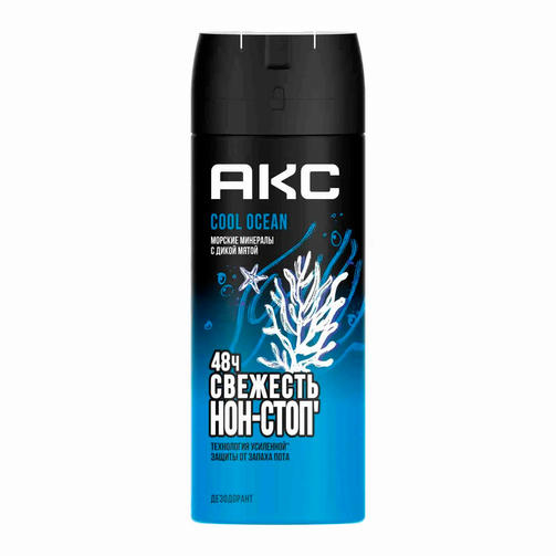 Дезодорант мужской спрей Акс Cool Ocean создан специально для крутых парней, которым нужна полная уверенность в своем образе и стильный парфюм. Аэрозольный парфюмированный дезодорант мужской создан для тех, кто не боится стоять на своем, готов следовать за мечтой и привык действовать! Средство от запаха пота подмышек и тела имеет приятный аромат, разработанный в сотрудничестве с одной из лучших мировых парфюмерных команд. Мужской дезодорант-спрей не оставляет белых следов и желтых пятен на одежде'. Дезодорант парфюмированный мужской Акс ежедневно обеспечивает желанную свежесть коже подмышек и одежде. Легендарная* формула спрея Акс включает в себя два основных элемента защиты. Это надежная защита от запаха пота на 48 часов** и топовый* аромат. Cool Ocean - это запах с мощными акватическими аккордами в сочетании с дерзкой свежестью дикой мяты. Дезик мужской спрей Cool Ocean станет изысканным дополнением к твоей коллекции средств личной гигиены. Дезодорант-спрей мужской содержит активный компонент против бактерий, вызывающих неприятный запах при потливости. Дезодорант Акс мужской не содержит солей алюминия и озоноразрушающих веществ. Дезодорант для мужчин Акс - это cruelty-free косметика, то есть не тестируется на животных. Акс дезодорант мужской нужно наносить после душа, чтобы не волноваться о чистоте и свежести на протяжении всего дня. Дезики-спреи хороши тем, что они более гигиеничны в использовании, чем другие форматы - с контактными аппликаторами. Используй дезодорант мужской парфюмированный Акс, и ты забудешь о следах и пятнах на любимой одежде'. Дезодорант мужской аэрозольный Акс освежит не только твой образ, но и мысли! Дезодорант для тела Акс - это отличный подарок для мужчин, парней, подростков. Купите дезодорант мужской Акс Cool Ocean своему мужу, другу, коллегам на праздник и просто так. 332,80 ₽ / шт