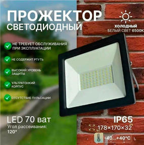 Прожектор с/д LE LED FL1 70W BLACK (1/20) IP65 холодный белый