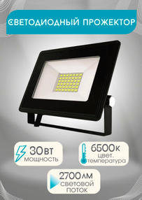 Прожектор с/д LE LED FL1 30W BLACK (1/40) IP65 холодный белый
