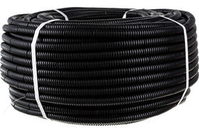 Труба гофрированная из ПНД с зондом, черная Ø 20 мм (бухта 100 м/уп.) REXANT из полиэтилена низкого давления отлично подходит для защиты изолированных проводов и кабелей от механических повреждений и агрессивного воздействия окружающей среды при прокладке сложных систем и трасс. Применяется для скрытой и открытой прокладки в несущих и ограждающих конструкциях из несгораемых материалов жилых, административных и производственных зданий и сооружений. 60,00 ₽ / м