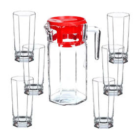Набор Pasabahce "Kosem" состоит из шести стаканов и графина, выполненных из прочного натрий-кальций-силикатного стекла. Предметы набора, оснащенные рельефной многогранной поверхностью, предназначены для воды, сока и других напитков. Графин снабжен пластиковой, плотно закрывающейся крышкой. Изделия сочетают в себе элегантный дизайн и функциональность. Благодаря такому набору пить напитки будет еще вкуснее. Набор для воды Pasabahce "Kosem" прекрасно оформит праздничный стол и создаст приятную атмосферу. 984,89 ₽ / шт