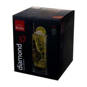 Набор стаканов RONA "Diamond" 370 мл, 4шт. Стакан, который широко используется в барах, ресторанах, отелях и других заведениях для подачи разнообразных алкогольных и безалкогольных напитков. Обычно в них подают напитки, которые принято пить не спеша, для полного раскрытия всех нюансов вкуса и аромата. Хайбол отличается выдержанной классической формой и красивым декором на стенках. Такая посуда идеально подходит для украшения праздничного стола и ежедневного применения. Бокалы из коллекции изготавливаются из стекла. Этот материал обладает красивым блеском, отличается прочностью, износоустойчивостью и простотой ухода. 8 032,00 ₽ / шт