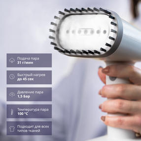 Galaxy LINE GL 6198 БЕЛЫЙ Отпариватель ручной 1800 Вт, контейнер для воды объемом 250 мл, время нагр