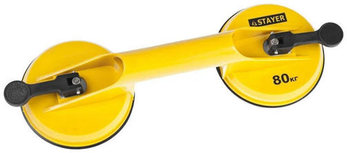 Двойной пластмассовый стеклодомкрат STAYER MASTER MAXLift 80кг 33718-2 - это специальное приспособление, которое используют при транспортировке стекол, зеркал и других подобных изделий, а также заготовок с гладкой поверхностью. Резиновое нескользящее основание прочно фиксируется на предмете по вакуумному принципу и поднимается посредством двух эргономичных рукояткой. Несмотря на малый вес и небольшие размеры, данная модель способна поднимать и удерживать груз весом до 80 кг. 1 467,40 ₽ / шт