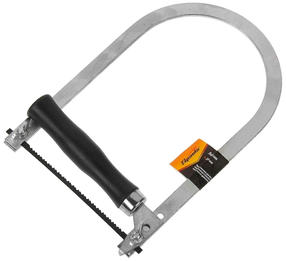 Лобзик Sparta 240245 длиной 300 мм предназначен для создания прямо- и криволинейных распилов в фанерных или пластиковых заготовках. Прочная и упругая стальная рама надежно удерживает полотно длиной 120 мм, обеспечивая высокое качество работ. Лобзик используется для ремонта и отделки, а также для художественной резьбы по дереву. Преимущества Полотно изготовлено из высокоуглеродистой стали, а зубья прошли дополнительную закалку, поэтому инструмент долго сохраняет режущие свойства. Благодаря мелким зубьям достигается необходимая точность при работе с мелкими деталями. Легкая пластиковая рукоятка удобной формы обеспечивает комфорт при длительном использовании. 396,00 ₽ / шт