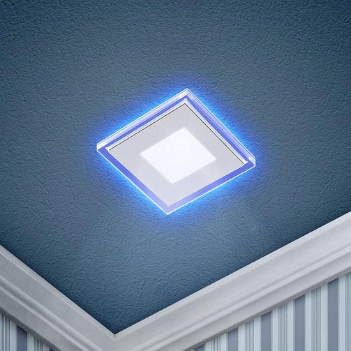 Cветильник светодиодный ЭРА LED квадратный 4-6 BL с синей подсветкой 220V 6W 4000К