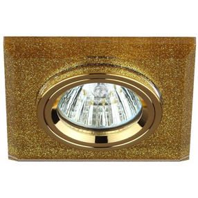 Св-к ЕРА DK08 GD/SHGD декор стекло квадрат MR16 12V/220V 50W GU5.3 золото/золотой блеск