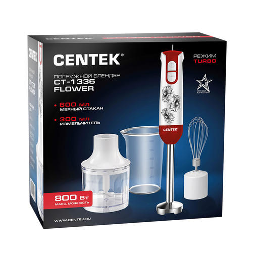 Блендер Centek CT-1336 Flower (белый/красн) 800Вт DC мотор, стакан 600мл, чоппер, венчик