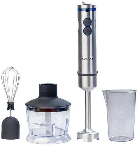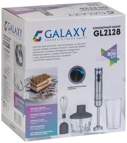 Блендер Galaxy GL2128 оснащен двигателем мощностью 800 Вт. Функционирует от электросети, длина кабеля составляет 1,02 м. Комплектуется тремя насадками: погружной головкой, венчиком и пластиковой чашей измельчителя объемом 600 мл. Механическое управление представлено двумя кнопками и поворотным регулятором скорости. Четырехлепестковое лезвие изготовлено из нержавеющей стали и позволяет не только измельчать продукты, но и смешивать. Корпус выполнен из металла. Для удобства хранения предусмотрена петля для подвешивания. Вес составляет 1,37 кг, габариты — 23,3х21х15 см. Мерный стакан объемом 500 мл поставляется в комплекте. 2 700,00 ₽ / шт