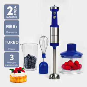 Блендерный набор GALAXY LINE GL2129 имеет высокую мощность 900 Вт и долговечный DC-мотор. Профессиональный мотор обеспечивает долгий срок службы даже при интенсивной регулярной работе, а также низкий уровень шума, по сравнению с работой классического мотора. Насадка-блендер выполнена из высококачественной нержавеющей стали, поэтому отлично справляется с особо твердыми и горячими продуктами. Четырехлопастной нож быстро и равномерно измельчает весь объем продуктов. Нож выполнен из особой стали марки 18/10, которая устойчива к коррозии и воздействию солей. Высокая мощность и наличие режима "TURBO" позволяет мгновенно измельчить весь объем продуктов, а также взбить пюре, соус, крем, мусс и пр. Плавная регулировка скорости позволит обрабатывать различные по плотности продукты. Насадка-измельчитель имеет чашу оптимального объема 0,6 л. В ней Вы сможете готовить фарш, измельчать овощи и фрукты и мн. др. Насадка-венчик предназначена для взбивания. В комплекте блендерного набора GALAXY также присутствует мерный стакан объемом 0,5 л. и книга рецептов, которая расширит ваш кулинарный репертуар. Стоит отметить, удачное решение светодиодной подсветки кнопок, которая обеспечивает хорошую видимость в слабо освещенном помещении. Металлический корпус с прорезиненными вставками обеспечивает блендерному набору GALAXY LINE GL2129 отличную эргономику и стильный современный дизайн. Номинальная потребляемая мощность, Вт: 900 Параметры питания, В/Гц: 220-240/50 Мощность, Вт: 900 Объем, л: 0.6 Режим ТУРБО: Да Венчик для взбивания: Да Материал ножа: Нержавеющая сталь Нож: четырехлопастный Мерный стакан: Да Объем мерного стакана, л: 0,5 Плавная регулировка скорости: Да Насадка-измельчитель с чашей: Да Объем чаши, л: 0,6 Материал насадки: нержавеющая сталь Режимы работы: "Турбо" Длина шнура питания, м: 1,1 Насадки в комплекте, шт: 3 Габаритные размеры упаковки, см: 20,5х14,5х42 Вес брутто, кг: 1,405 2 400,00 ₽ / шт