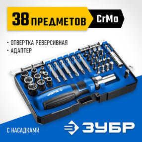ЗУБР Компакт-38, 38 предм., рреверсивная отвертка с насадками, Профессионал (25165-H38)