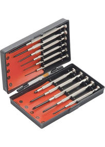 Набор отверток Sparta 133605, 11 предметов, используется для точной механики при осуществлении монтажа/демонтажа микровинтов со шлицами SL и PH. Он рассчитан на несложные бытовые работы, может применяться в частной мастерской. С помощью набора легко ремонтировать мелкие бытовые приборы, очки, часы и т.д. Преимущества Удобство и точность работы — отвертки оснащены вращающимися затыльниками. Стальные рукоятки с рифлением — отвертки не скользят в руке. Безопасное хранение и транспортировка — детали набора размещены в пластиковом кейсе с ложементом. 260,00 ₽ / шт