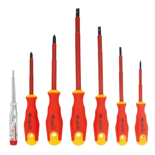 Набор отверток диэлектрических до 1000 В, 7 шт, тестер, CrV, двухкомпонентные рукоятки Сибртех 12936