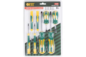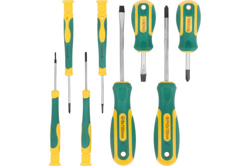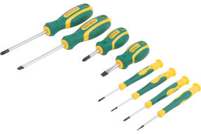 Отвертки "Контур", CrV сталь,прорезин. ручки,4шт.+отвертки для точных работ 4 шт.,набор 8шт 56038