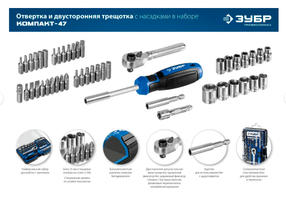 ЗУБР Компакт-47, 47 шт, отвертка-битодержатель с насадками, Профессионал (25283-H47)