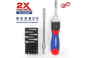 Профессиональная отвертка Биты из хром-ванадиевой стали 20 шт. Торцевые головки из хром-ванадиевой стали 6 шт. Гибкий удлинитель для работы под углом Удобный переключатель реверсивного привода одним пальцем Специальный механизм ускоренного в 2 раза вращения Эргономичная не скользящая прорезиненная рукоятка 1 600,00 ₽ / шт