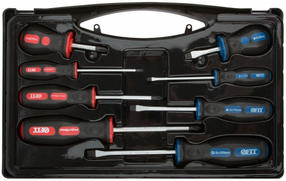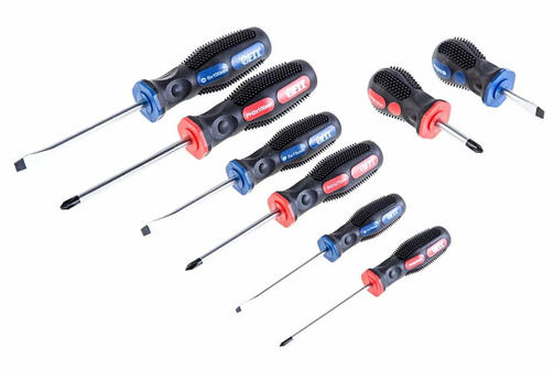 Набор отверток FIT IT 56042, "универсал", CrV сталь, прорезиненные ручкиНабор отверток FIT 56042 поставляется в пластиковом чемодане, для удобного хранения инструментов. Данный набор состоит из крестовых и шлицевых отвёрток, с помощью которых можно создавать и демонтировать резьбовые соединения. Каждая отвёртка оснащена эргономичной резиновой рукояткой и стержнями из хромованадиевой стали с намагниченными наконечниками. Особенности: Жало каждой отвертки изготовлено из хромованадиевой стали, что обеспечивает высокую прочность и надежность набора. В набор входит четыре отвертки с наконечником PH0x75 мм, PH1x75 мм, PH2x100 мм, PH2x38 мм. В набор входит четыре отвертки с наконечником SL3x75 мм, SL5x75 мм, SL6x100 мм, SL6x38 мм. Большой спектр применения. Магнитный наконечник у каждой отвертки. Износоустойчивость. 2 000,00 ₽ / шт