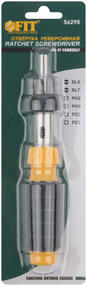 Отвертка реверсивная, 6 CrV бит, желтая ручка с антискользящей накладкой 56295