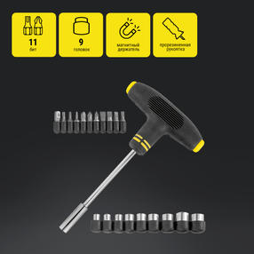 Kolner KSDS 1/11/9 Отвертка с набором бит и головок,эргономичная прорезин, Т-образная рукоят.