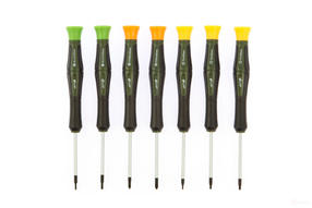 Количество предметов: 7 Сталь: CrV6150 Твёрдость: 51—56 HRC Длина отверток: 150 мм Длина жала: 50 мм Намагниченные наконечники; Вращающиеся затыльники; Двухкомпонентные, эргономичные рукоятки. Состав набора: Шлиц: 1,5; 2 мм Philips: PH00, PH0 Torx: T5, T6, T7 995,00 ₽ / шт
