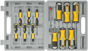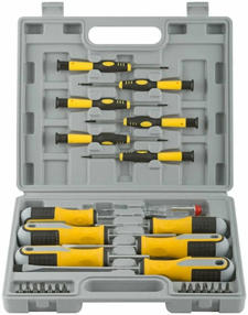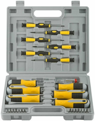 «Старт». В наборе: 5 отверток, 6 отверток для точных работ, 1 индикаторная отвертка, 1 отвертка с магнитным держателем для бит, 14 хром-ванадиевых бит. Упаковка: пластиковый чемодан. параметры Брэнд: FIT Артикул: 56403 Страна происхождения: китай Краткое описание: 27 шт. Габариты: 285x235x50 2 041,00 ₽ / шт