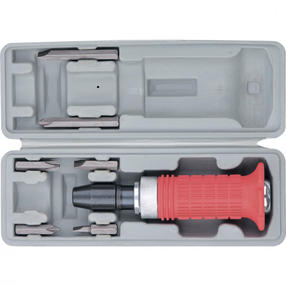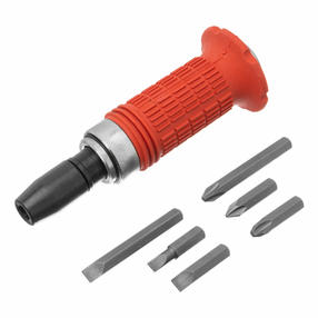 Ударно-поворотная отвертка Matrix 11579 с присоединительным размером 1/2 дюйма, с набором бит из 6 шт., с обрезиненной ручкой, в пластиковом боксе, используется для работ с резьбовыми соединениями. Благодаря металлическому затыльнику выдерживает удары молотком, поэтому справляется даже с перетянутыми или заржавевшими крепежами. Входящие в набор биты подходят для шлицев SL и PH. Инструмент предназначен для бытового использования, а также будет полезен дома, на даче или в гараже. Преимущества Отвертка из углеродистой стали устойчива к регулярным механическим нагрузкам и рассчитана на длительную эксплуатацию. Присоединительный квадрат 1/2 дюйма с шариковым фиксатором позволяет использовать отвертку с торцевыми головками. Корпус отвертки обрезинен, и она не выскальзывает из ладони, что повышает комфорт во время работы. Все элементы набора размещены в ложементах пластикового кейса, поэтому их удобно хранить и перевозить. 1 260,00 ₽ / шт