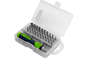 Отвертка реверсивная для точных работ с набо.бит и торцевых головок, 32 предмета CrV// СИБРТЕХ 13370