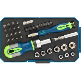 Отвертки реверсивные с набором бит и торцевых головок, 41 шт., CrV// Сибртех 13338