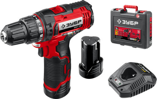 ЗУБР С1-12, 12 В, 30 Н·м, 2 АКБ (2 А·ч), дрель-шуруповерт, кейс (ДШЛ-125-22)