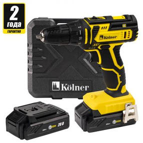 Kolner KCD 20-2LC (8шт) Дрель-шуруповерт аккумуляторная 20 Вольт, 0-400/1450 об/мин, 30/21Нм, 2 Ач(L