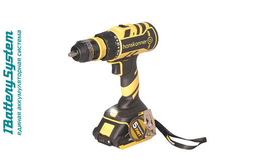 HCD1865C Дрель аккум. б/щ Hanskonner, 18В, 1BatterySystem, 2 акк. 2 Ач, 65Нм, смен патрон,кейс
