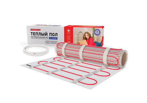 Теплый пол (нагрев. мат)REXANT Classic RNX-1,0-150(площадь1,0м2(0,5х2,0м),150Вт,двухжил. с экран