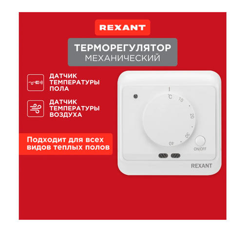 Терморегулятор мех. с датчиком температуры пола и воздуха (R72XT) REXANT 51-0580