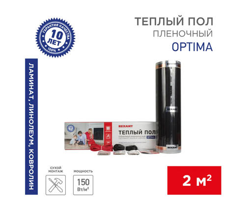 Пленочный теплый пол REXANT Optima 150 2 м²/0,5 х 4 м/300 Вт