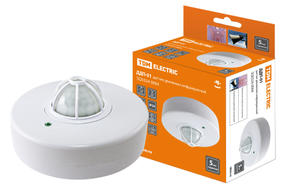 Датчик движения потолочный ДДП-02 1100Вт, 5-480с, 2-12м, 5+Лк,160(сбоку)+360(сверху) IP33 TDM