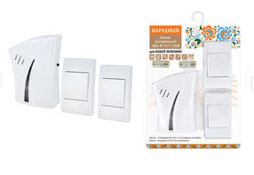 Звонок беспроводной на батарейках "народный" ЗББ-Н-12/1-32М (32 мелодии, кнопка IP30, 2х1,5В АА)