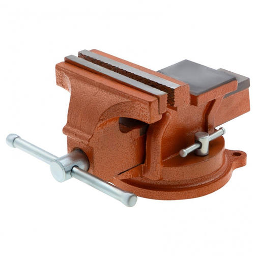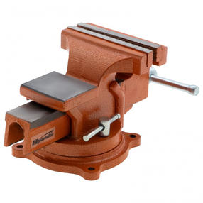 Поворотные слесарные тиски Sparta 186255 с наковальней, ширина губок 125 мм, — это небольшой инструмент для захвата деталей до 75 мм. Будут полезны в частной мастерской или гараже для удобства обработки малогабаритных заготовок. Преимущества Корпус тисков выполнен из чугуна, а губки — из стали, благодаря чему достигается высокая прочность инструмента. На нерабочих поверхностях имеется порошковое покрытие для защиты от коррозии. Поворотные тиски позволяют менять положение заготовки для удобства ее обработки. Для осуществления ударных работ в конструкции тисков предусмотрена наковальня. Рельефные прижимные губки обеспечивают надежный захват изделий. Тиски можно использовать в качестве стационарного инструмента, т.к. они крепятся к верстаку на болты. 4 200,00 ₽ / шт