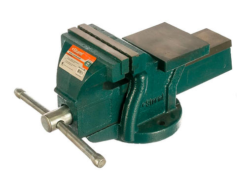 Слесарные тиски STURM 1075-04-100 широко используются как профессионалами слесарного дела, так и умельцами в собственном гараже или мастерской. Корпус выполнен из чугуна СЧ30, губки - HiQ высококачественная сталь, что обеспечивает долгий срок службы. Тиски этой модели отличаются простотой эксплуатации, функциональностью и отсутствием необходимости специального обслуживания. Широкие губки надежно фиксируют обрабатываемую деталь, не повреждая ее поверхность. Особенности тисков Sturm 1075-04-100 Жесткая фиксация Широкая опорная поверхность губок тисков позволяет жестко фиксировать заготовки различной формы. Функциональность Наличие у слесарных тисков STURM 1075-04-100 небольшой наковальни позволяет выполнять мелкие слесарные работы. Удобное крепление Готовые отверстия в основании служат для удобства крепления тисков посредством болтовых соединений к рабочему столу или верстаку. 3 650,00 ₽ / шт