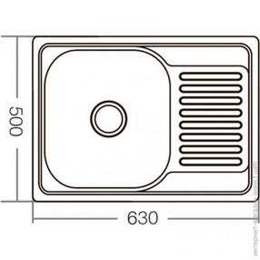 •Форма мойки – Прямоугольная •Материал мойки – Нержавеющая сталь •Длина мойки (мм) – 630 •Ширина мойки (мм) – 500 •Глубина чаши (мм) – 180 •Толщина мойки (мм) – 0,8 •Поверхность – Матовая (satin) •Число чаш (шт) – 1 •Цвет мойки – Стальной •Комплектация – Мойка, сифон, крепеж, уплотнительная лента, сетка •Тип – Врезная •Дополнительная чаша – Нет •Есть отверстие под смеситель – Нет 4 700,00 ₽ / шт